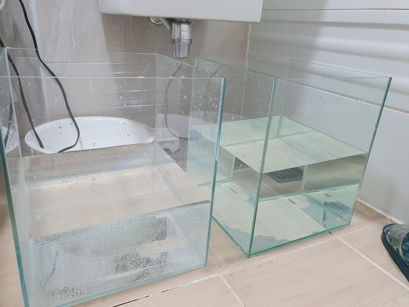 그래서 물샘 테스트중인 올디아망 옆에 나란히 놓고 보았는데 일반유리 어항이더라구요.
